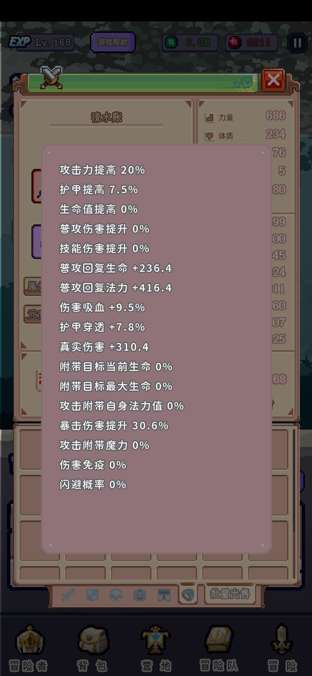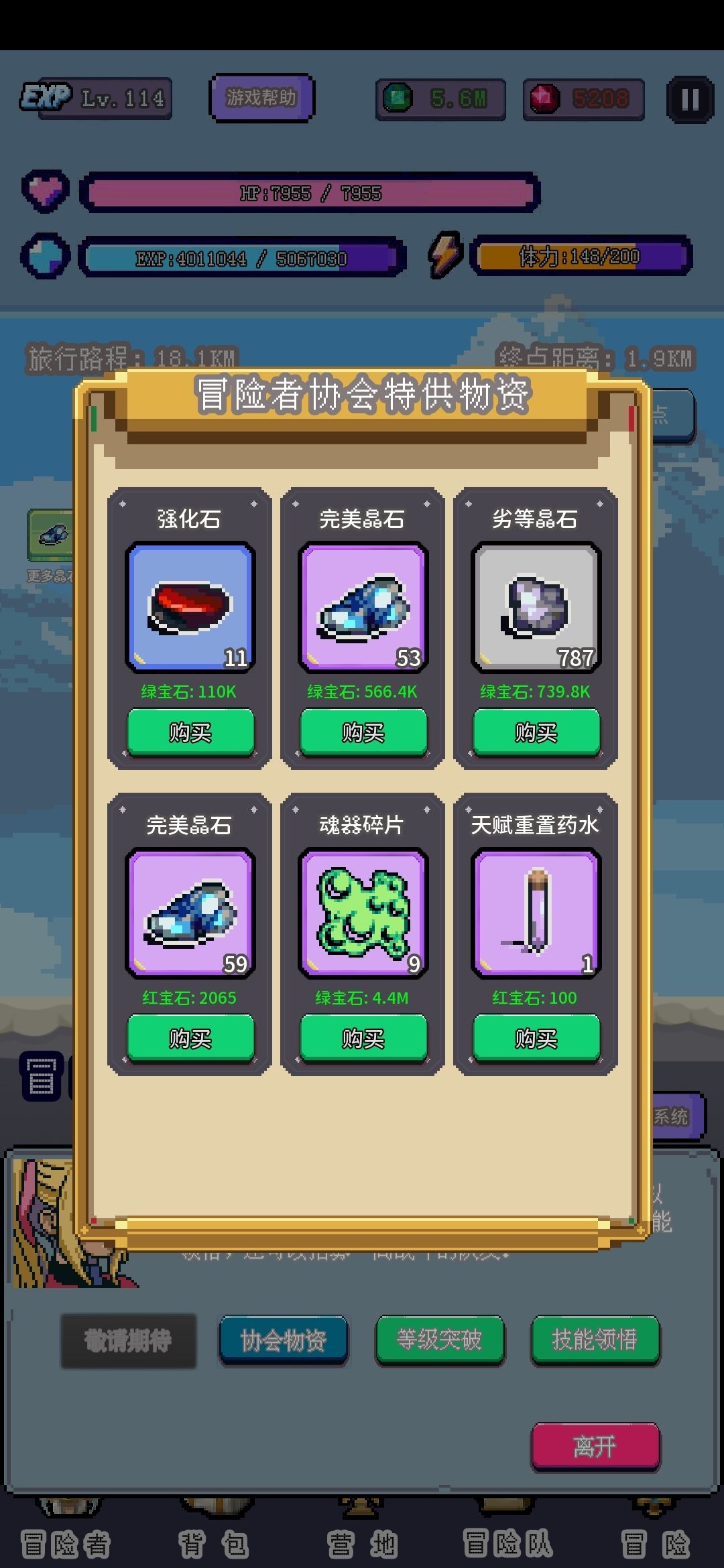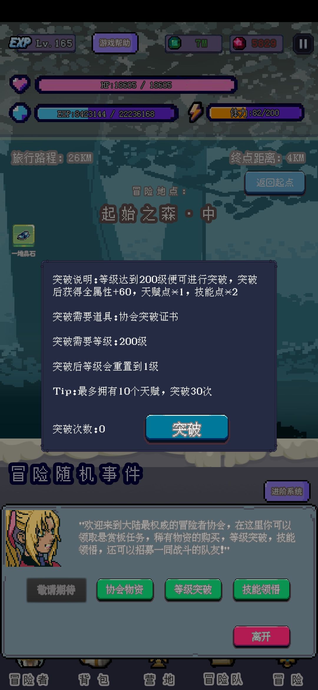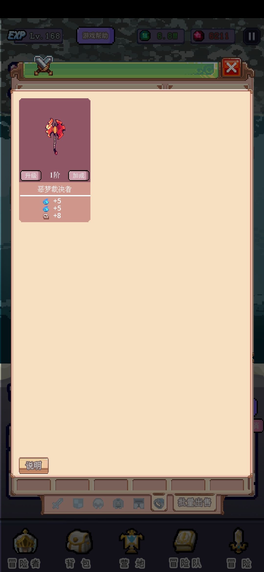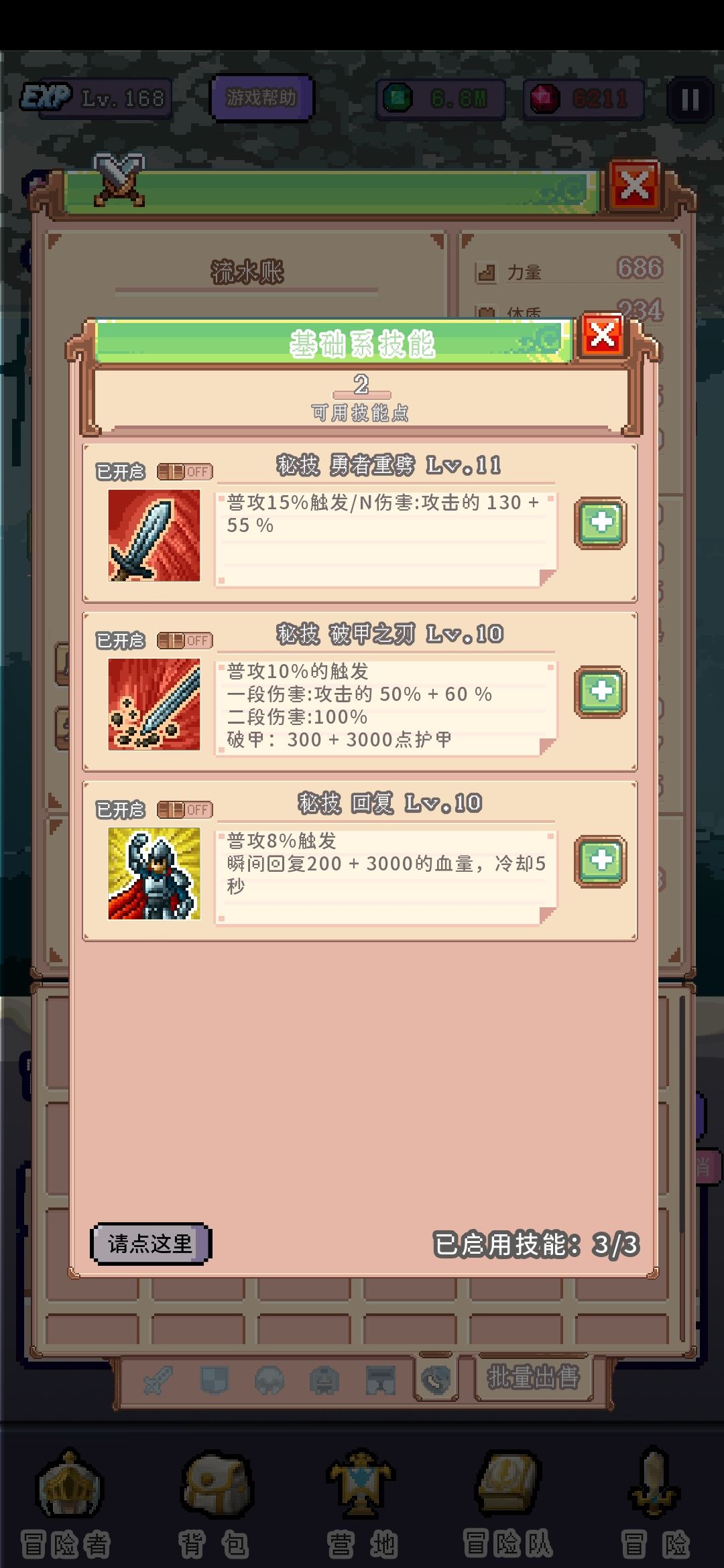 冒险功能就是换地图,打不过了退回上一张图刷