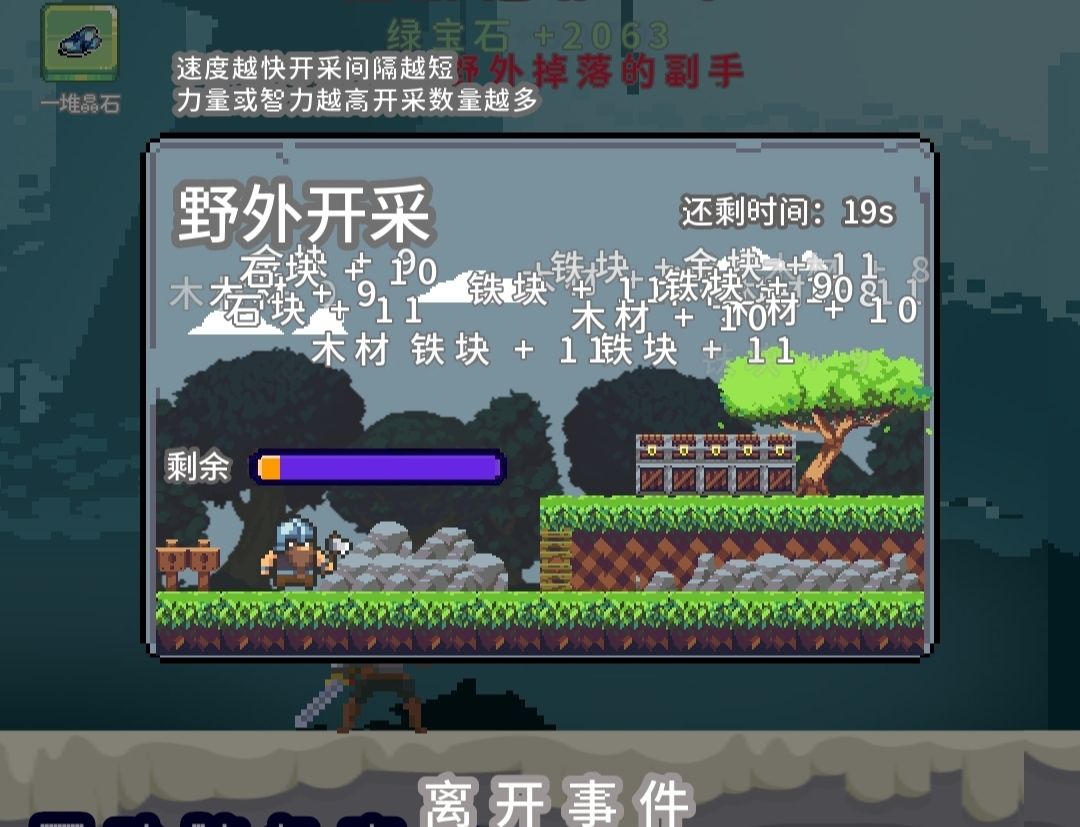 就是可以随时点掉,会掉资源的,如:石块,铁块,木头,金块,宝石,宝箱及体力药水,100级以前建议有就点掉,100级之后装备一换,打工和采集的收益远远高于基础资源的收益,不建议在基础资源上浪费体力,只点宝石,宝箱和体力药水就好了。