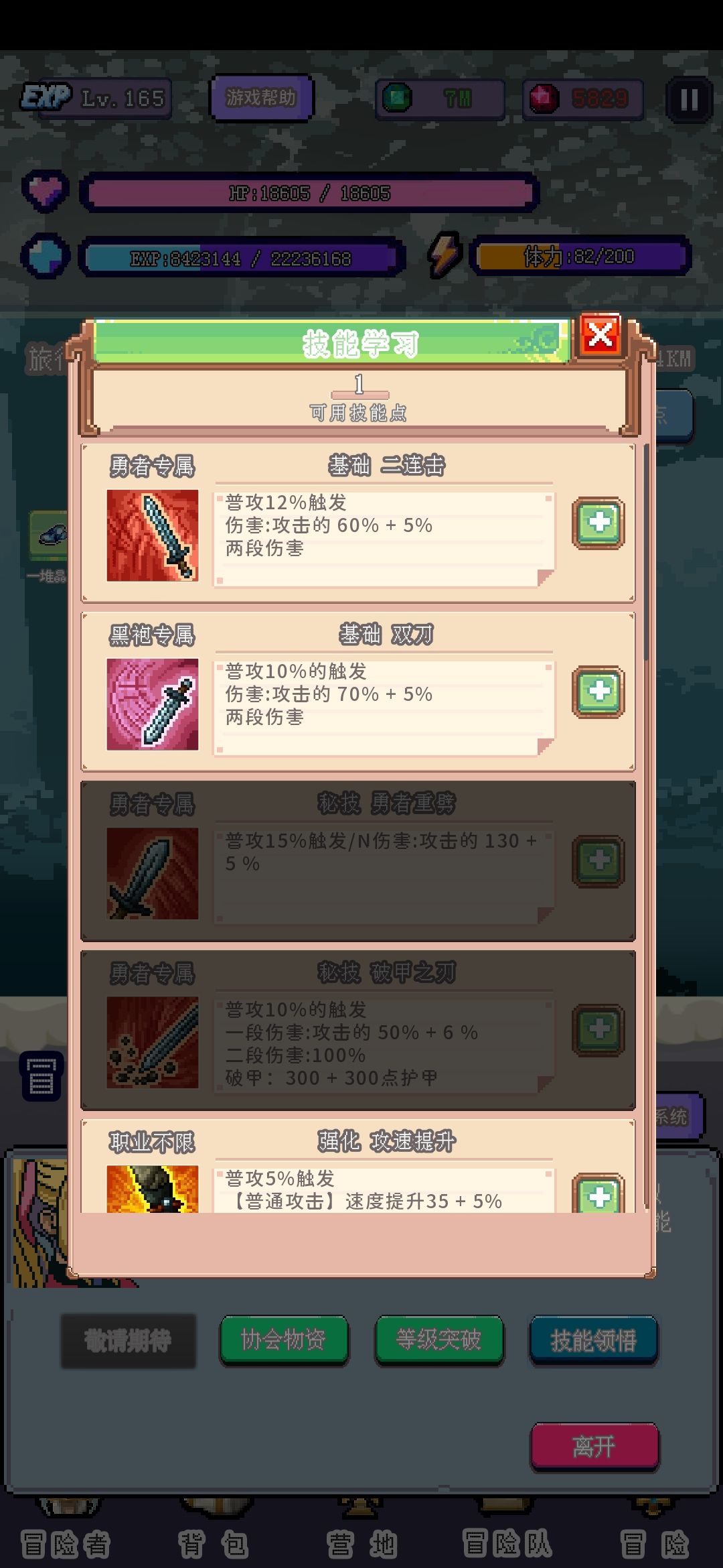 前期只要学两个技能就好了,等冒险者等级进阶了再学新技能,留一点技能点,其他技能点用来升级现有技能。