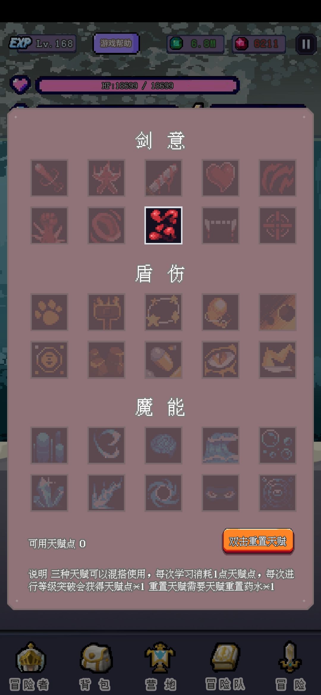 天赋的选择个人建议全部看一下具体属性再点,因为天赋点数有限,当然,重置药水也不贵,点错了还可以洗。