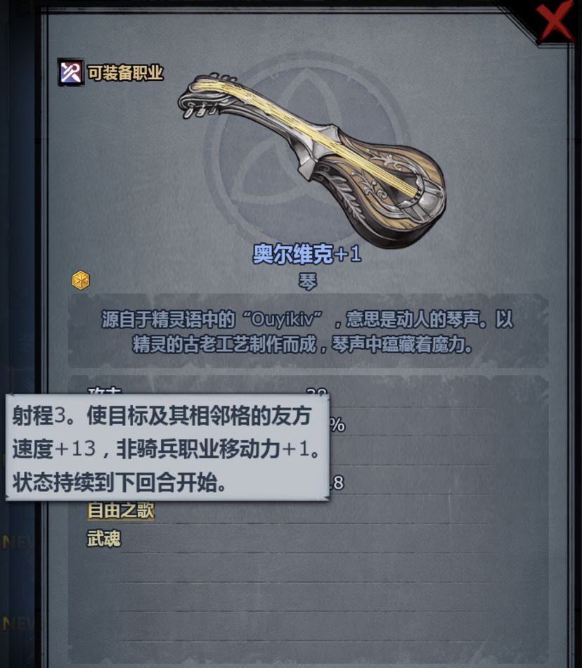 (注意该琴只给非骑兵单位移动距离+1,并且只有回合开始的首次移动有效)