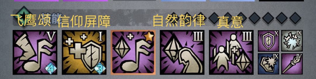 被动主动技能:自然韵律(大德,加AP上限及回蓝)或精准鼓舞(长弓或弩手,现在回蓝不如自然韵律了)