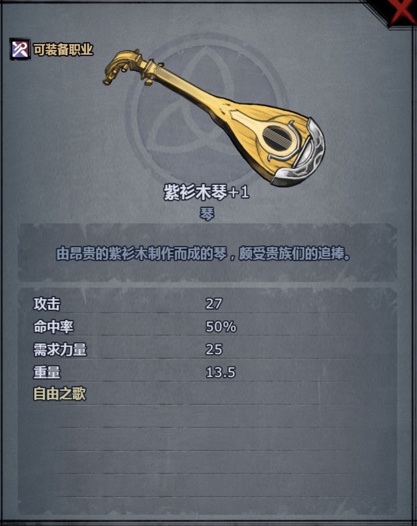 如果角色负重不够可以带紫杉木琴,效果和奥尔维克一样。可以在铁匠铺打造