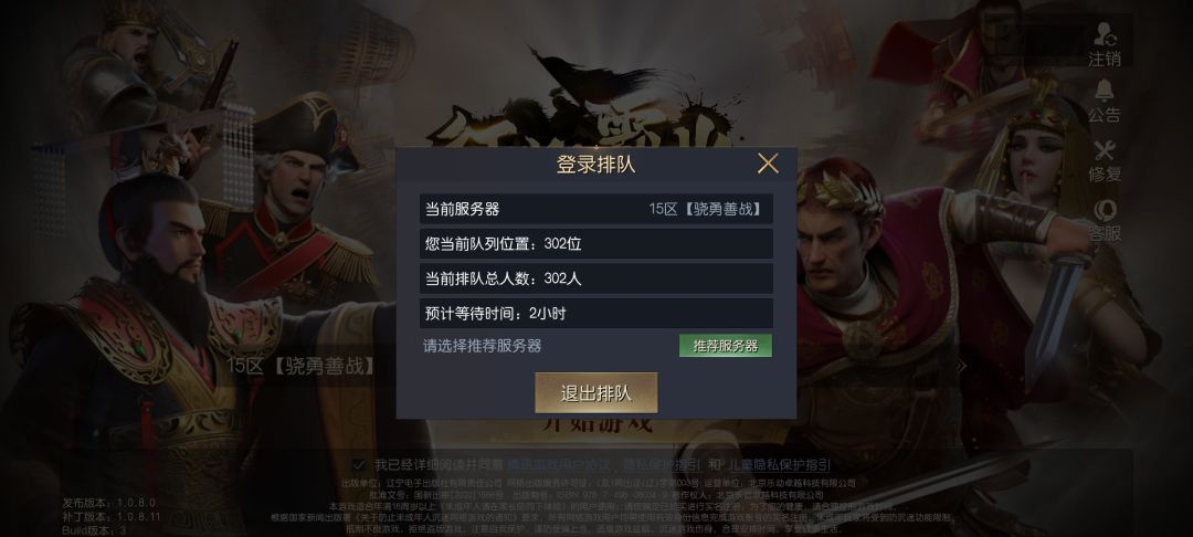 在下是Q服15线的玩家,今日下午12点开始联盟里一半的玩家登入不了游戏,显示排队导致我们开成进度推迟。一下午官方一点反应都没有。