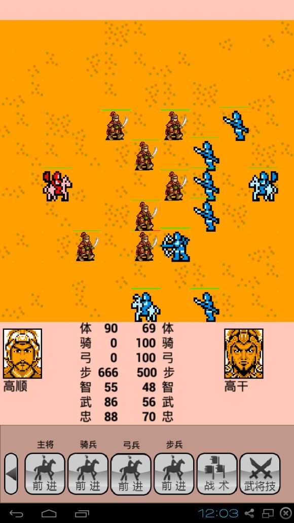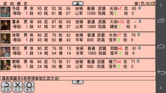 为"统"增加设定,默认开启(可关闭)。总多带兵2000人。修复特殊武将被搜索到时可能能引起的问题。修正安卓2.3.x不能安装的问题。战争时士兵不足1000时按1000士兵消耗粮食。武将武力可随等级上升。武将pk时速度提升。更新单挑时的命中率计算,武力高者命中率高。修复电脑方使用高顺时兵力多于700的问题。修复编辑新武将时总是报重名的问题。修正比武时总是玩家先出手的问题。修正白兵时电脑总是待机的问题。