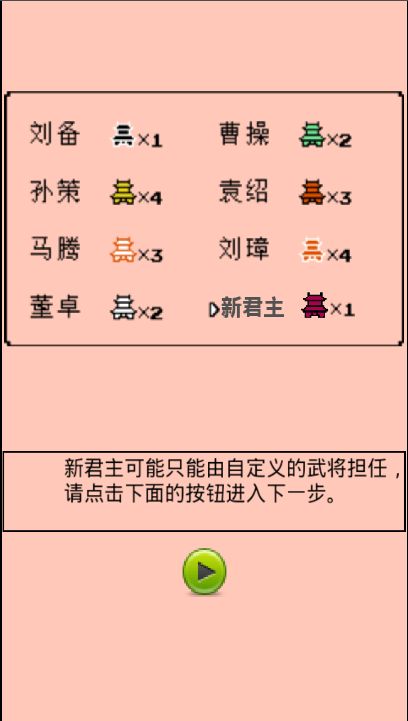 2.新增功能:可以使用新武将作为君主。