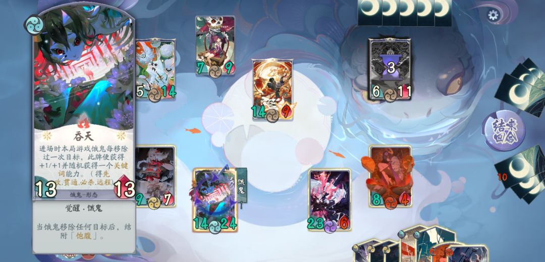 火取剑豪没上手,或者压力没给足,没达到致胜效果,就需要饿鬼吞天取胜。