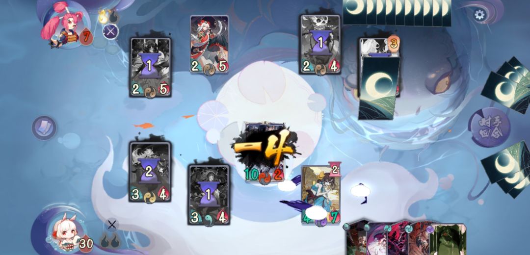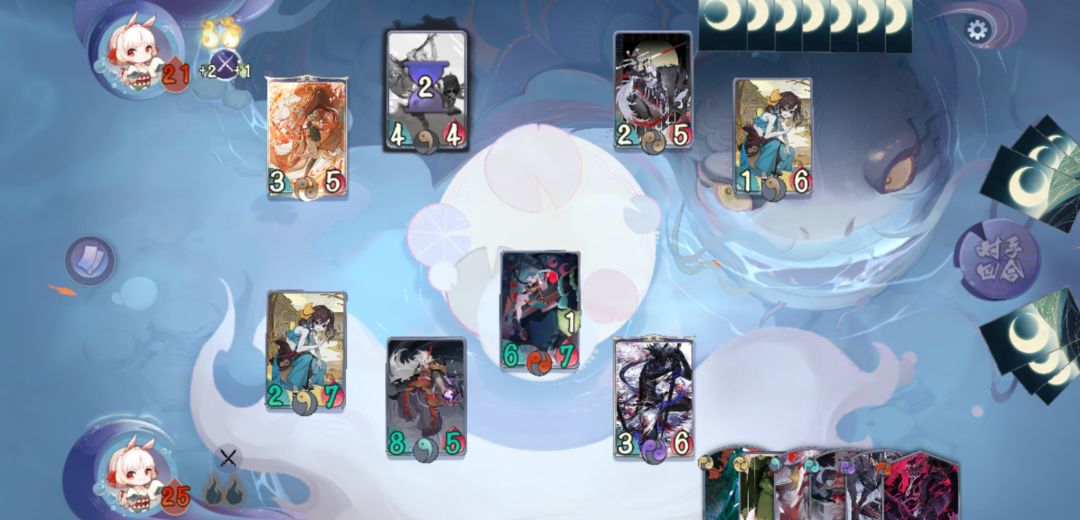 做好场面交换,血蝠之盾可以提前贴给式神,因为我们会吸血,所以我们的血可以随便掉。用我们的血换场面优势。