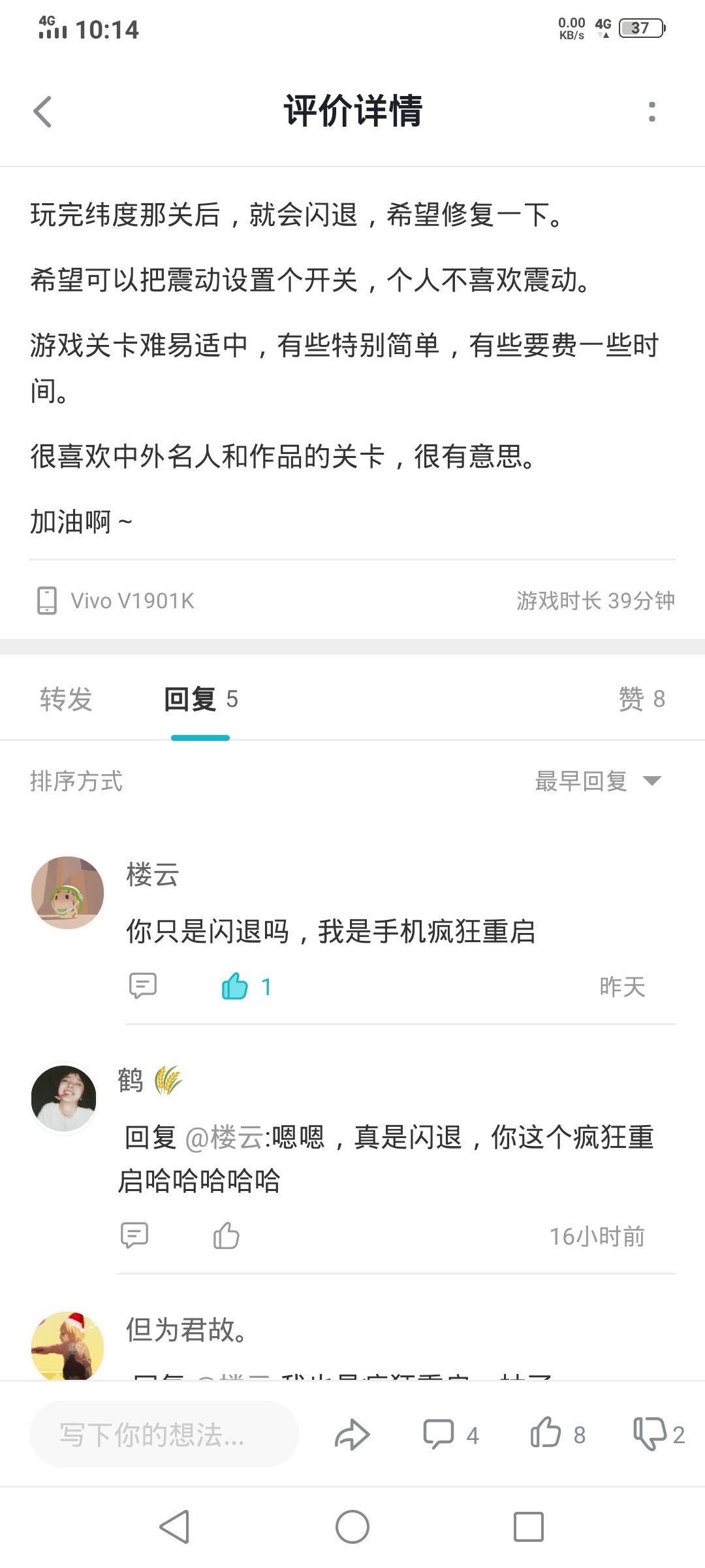 我是经纬度后面那一关 点开就手机关机 半天开不开机 后来发现是游戏问题 我以为手机中毒了 。。。。