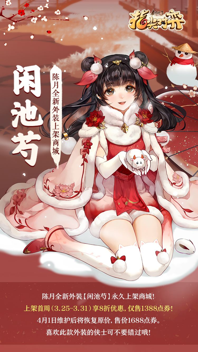 3月25日维护后,陈月新外装【闲池芍】、谷之岚新外装【孤山裔】永久上架商城!