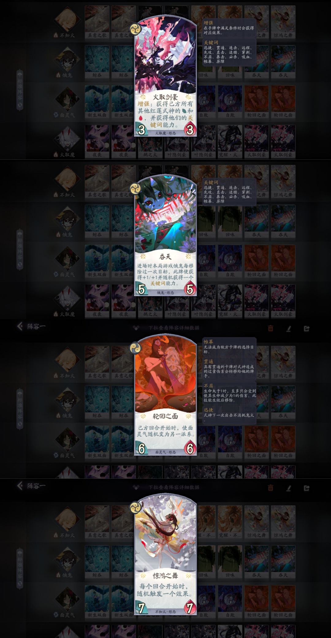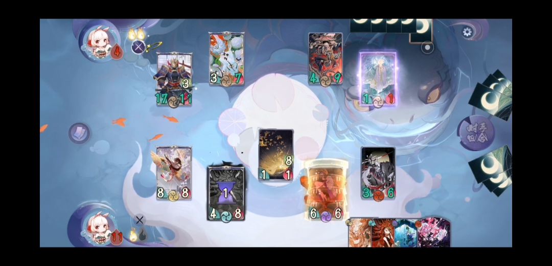 对战思路:中期过度保血,利用不知火鼓舞让队友轮流卖,后期找机会开回味,挂惊鸿,吞天到位利用不知火刷新出击,或者随机出好效果结束游戏。