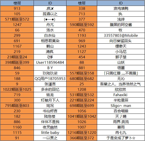 下面是中奖名单,各位大侠可以对照查看: