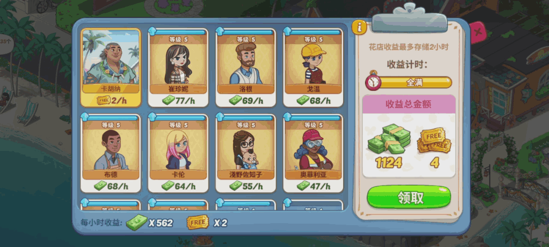 但请注意哦,顾客挂机收益一次最多两小时就会存满,如果店主们没有及时上线领取就不会再继续累积啦~