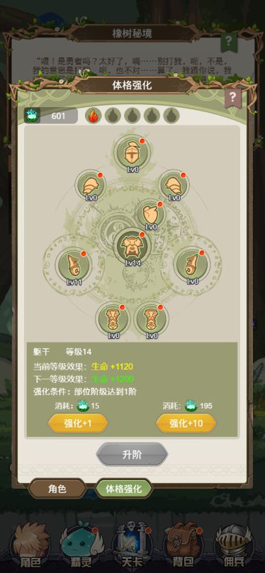 内容介绍:消耗获得的【秘境精华】,从而对各个体格部位进行强化,永久提升勇者的属性。只有所有部位提升到当前最大强化等级,才能进行下一阶段的体格强化,提升所有部位强化等级上限。完成所有体格强化后,多余的秘境精华可以在旅行商人处回收。