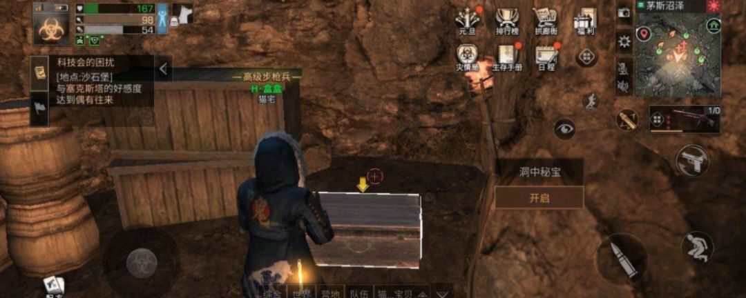 一、拾荒者的遗物坐标(7247,5407)跳到箱子的后面,这样感染者就不会打到,靠近宝箱之后有交互按键,点一下就可以打开了;