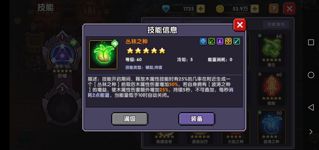 剩下的一个技能槽个人推荐 水系用波涛之种 木系用丛林之种