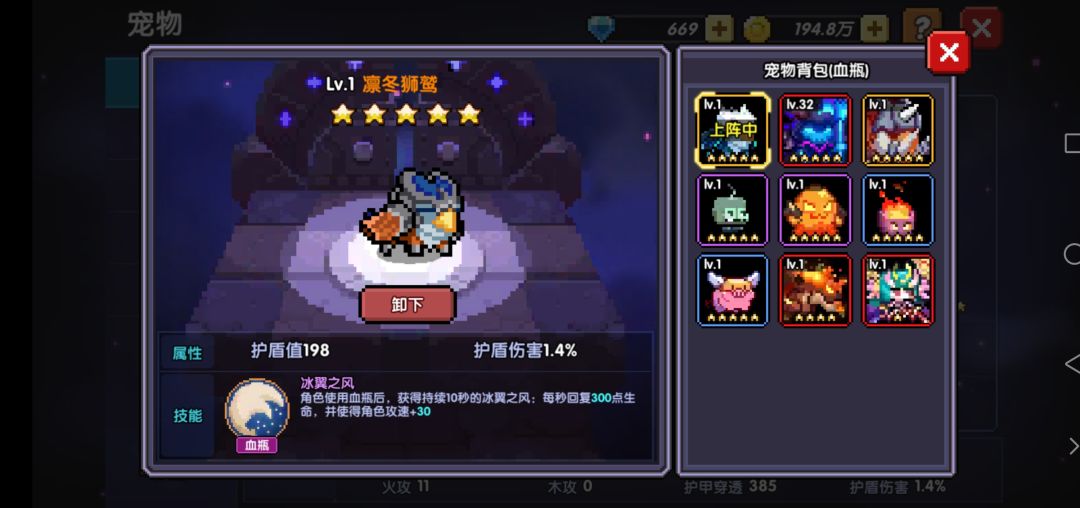 血瓶:目前没有可以提供辅助效果的血瓶位宠物 可以选择狮鹫加攻速或者软糖提供保命能力