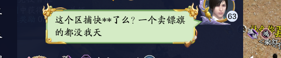 我在世界上问捕快都不干活了么,偌大的区居然没有一个镖旗?底下一个兄弟回复他上架了镖旗但是没显示。这是刚上架就被秒了还是纯粹的不显示。