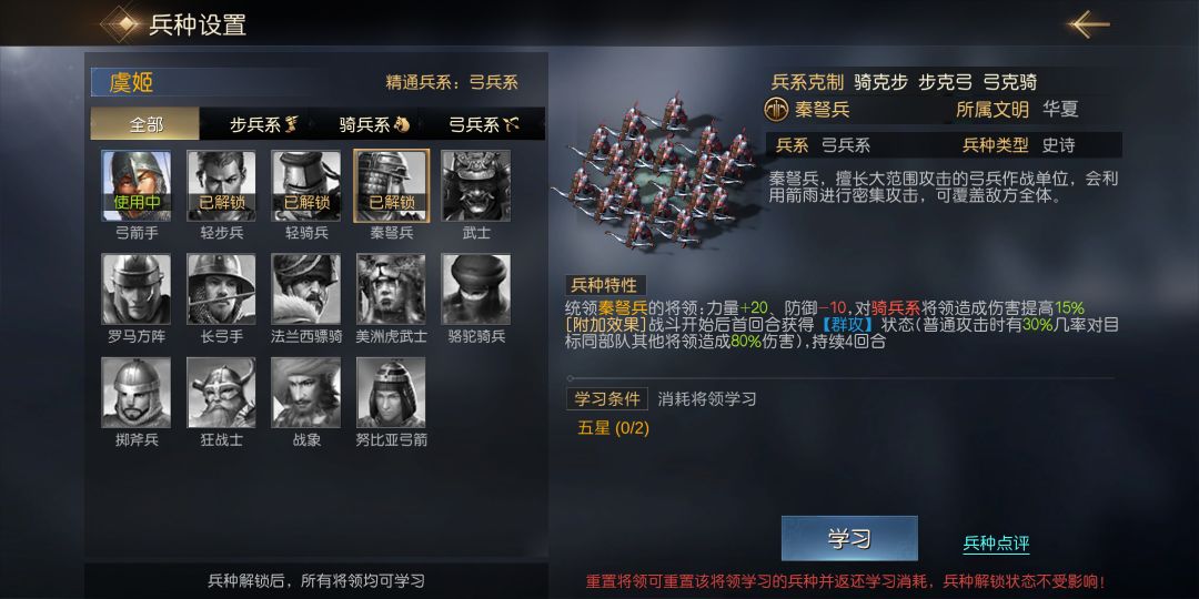 下面说的是兵种解锁后,所有将领均可学习,我这秦弩兵已经解锁了,学习怎么还要消耗武将?这不互相矛盾吗。这么多将领我要学习,那得消耗多少武将,这类有游戏不仅武将之间搭配,还要兵种搭配,谁也不能够保证一下子都搭配好。后期这个英雄我不想用了,当传承用,解锁兵种消耗的武将是否返还?