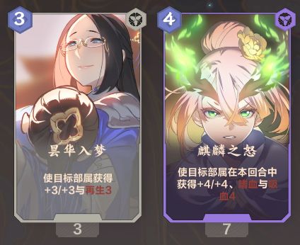 铺场差不多的时候开始贴决战号令,麒麟之怒,昙华入梦之类的BUFF,5-6费的时候基本开始进入斩杀线了。