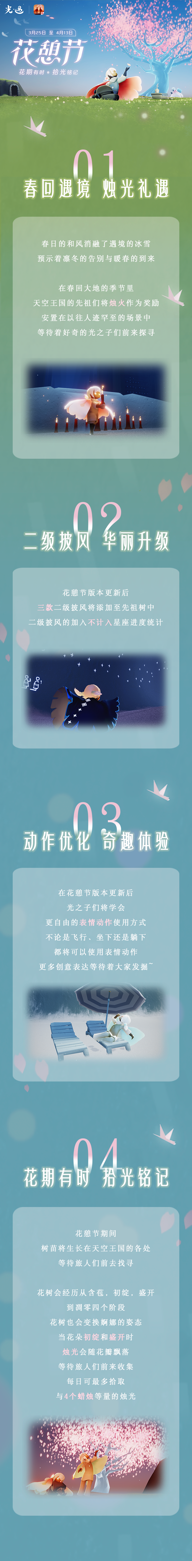 感谢各位对《光•遇》的关注与支持!微风轻柔的拂过遇境,消融了凛冬的冰雪,为天空王国的万物捎来春回的喜讯。