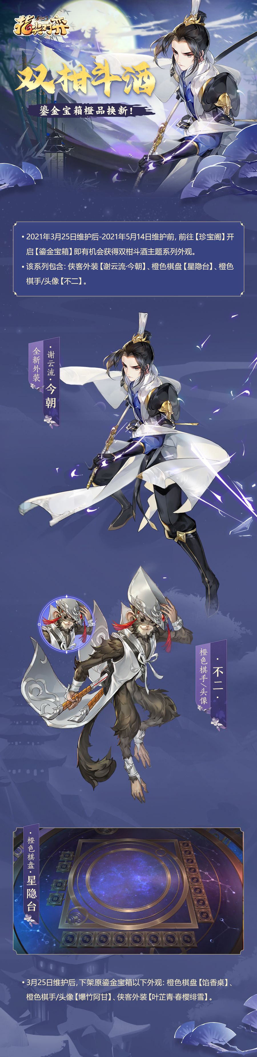 双柑斗酒主题外观将于3月25日加入鎏金宝箱~