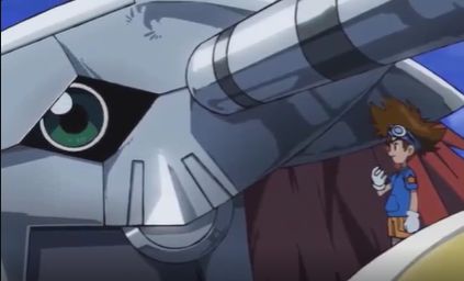 在新版《数码宝贝大冒险》中,机械暴龙兽通过太一神圣计划的力量实现了真正的究级进化而成为战斗暴龙兽。这只战斗暴龙兽不仅体型巨大,连带盖亚能量炮的体积也增大了数十倍。