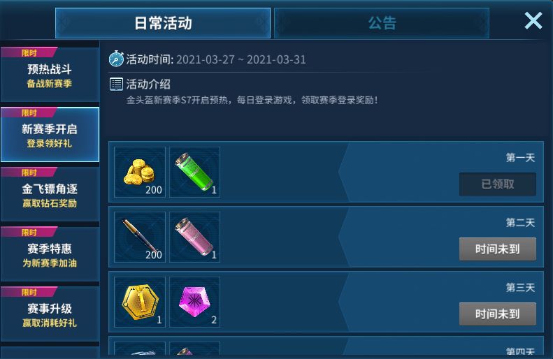 金头盔新赛季S7开启预热,每日登录游戏,领取赛季登录奖励!