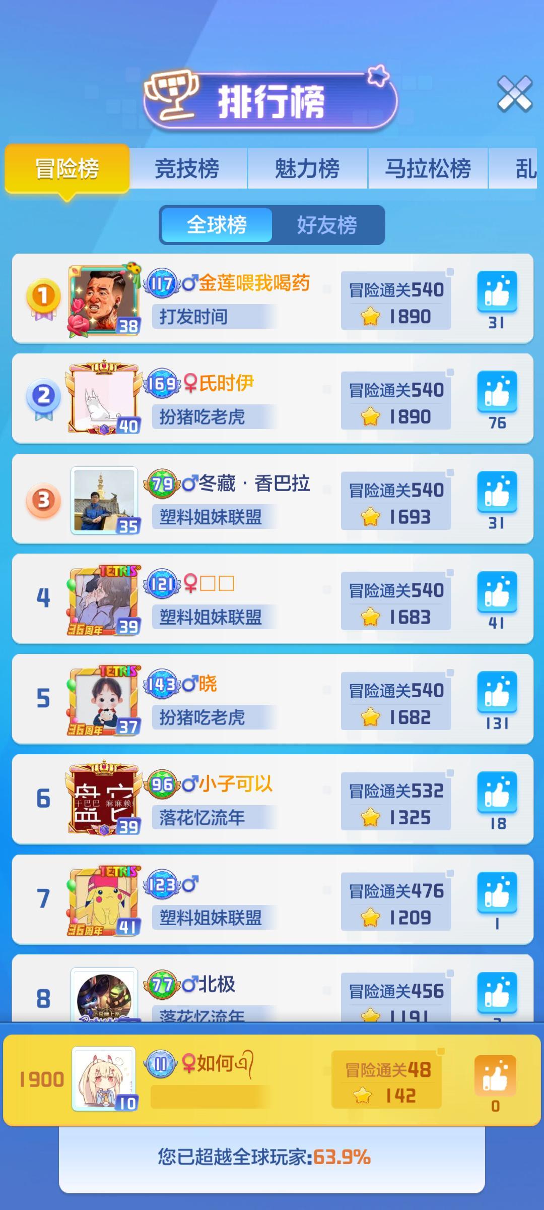 冒险排行榜