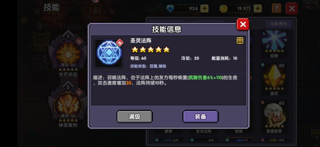 辅助需要高攻速职业时可将光芒冲击置换为圣灵法阵,有着不俗的治疗量,运用得当可抗下阿米大招,白色技能当然是五星
