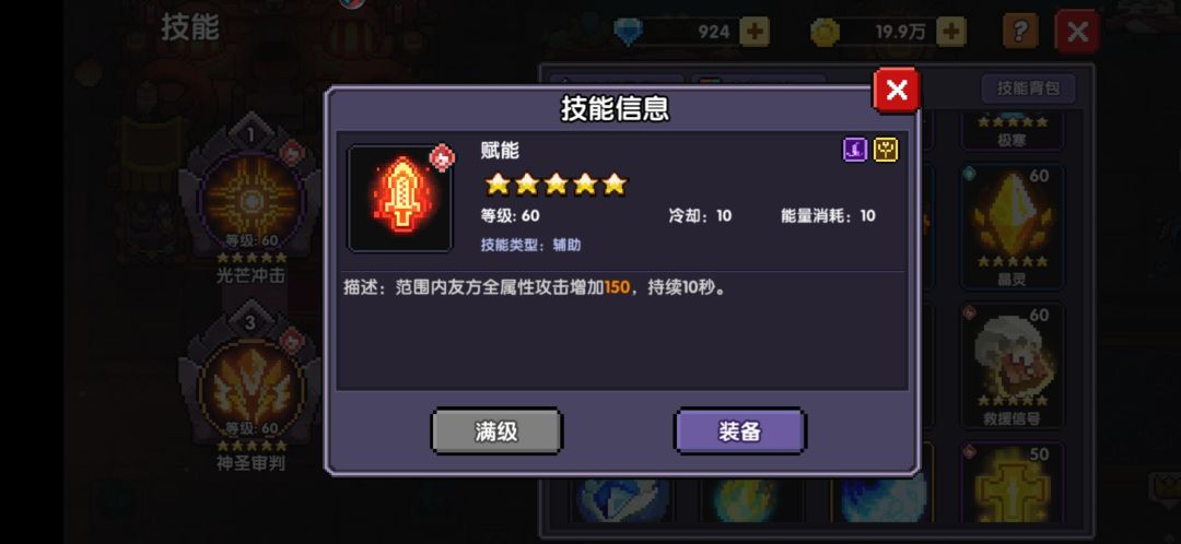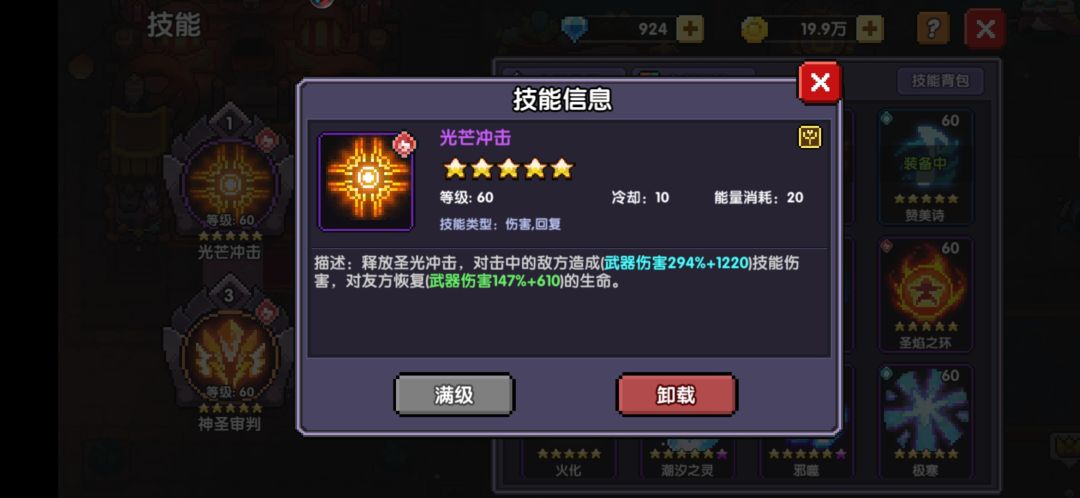 光芒冲击一级就可以用,配合四星武器启示可为队友提升10%技能伤害,五星可提供一管血的治疗量