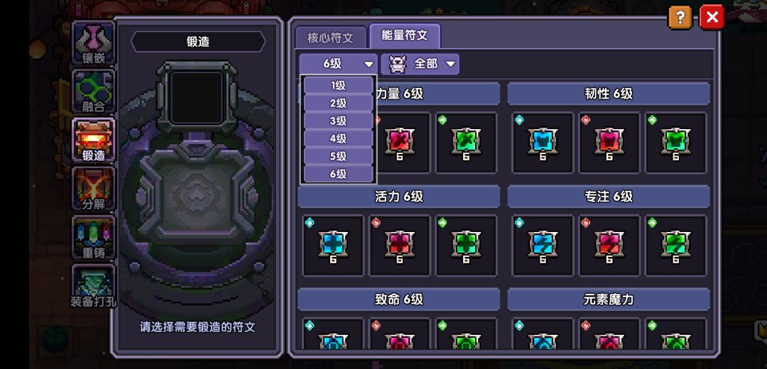 最高可以锻造6级符文能量和7级核心符文