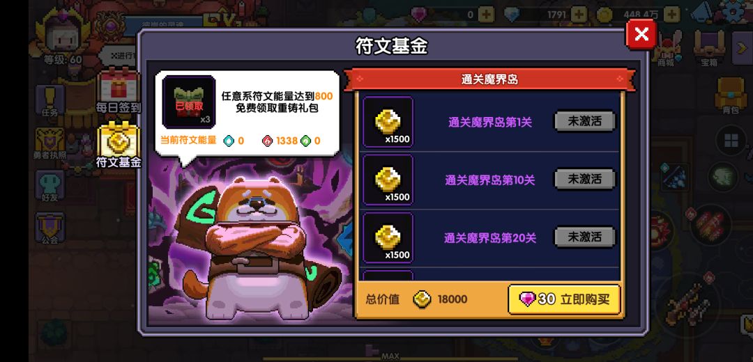 关于符文能量 有能力可以氪那个符文成长基金领18000符文能量 快点弄到一套6级就可以半只脚脚踏入传说中的大佬脚步了 然后慢慢肝能量吧