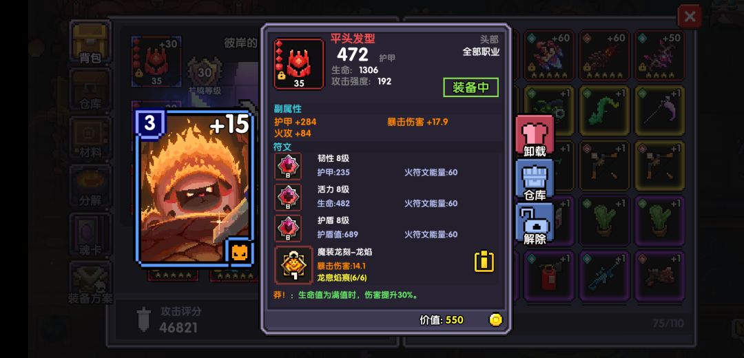 头部装备一般是核心符文是属攻(火攻,水攻,木攻)