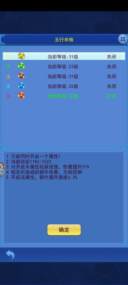 火:增加玩家攻击,对金属性玩家造成额外伤害