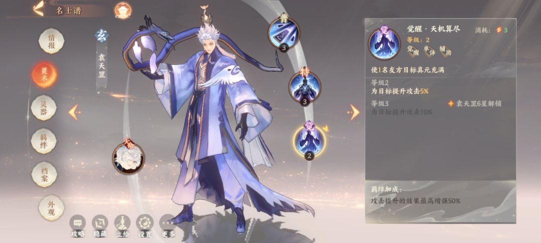 袁天罡也是目前忘川里的打火机啦,可以让我们更快的使用觉醒技能,在竞技场配合我们大周后可以使主C在第二回合就用出大招,让人猝不及防,并且袁天罡也可以帮助提高输出能力也是个不俗的辅助呢