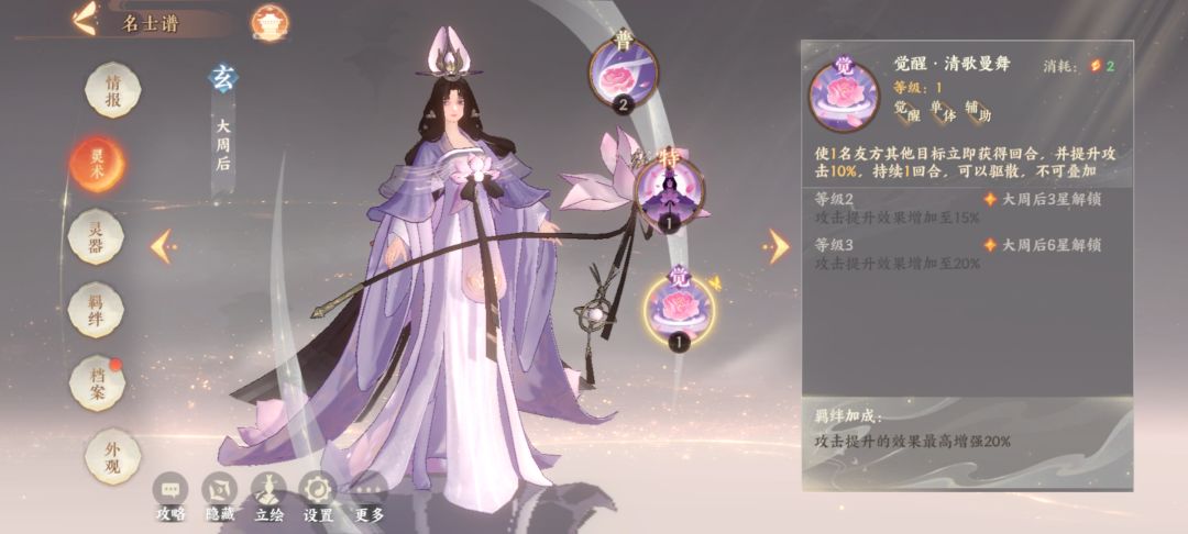 接下来就是我们的大周后姐姐啦~可以拉条的她自身敏捷也很高哦,可以帮助队友提高攻击力,更快的击杀对手
