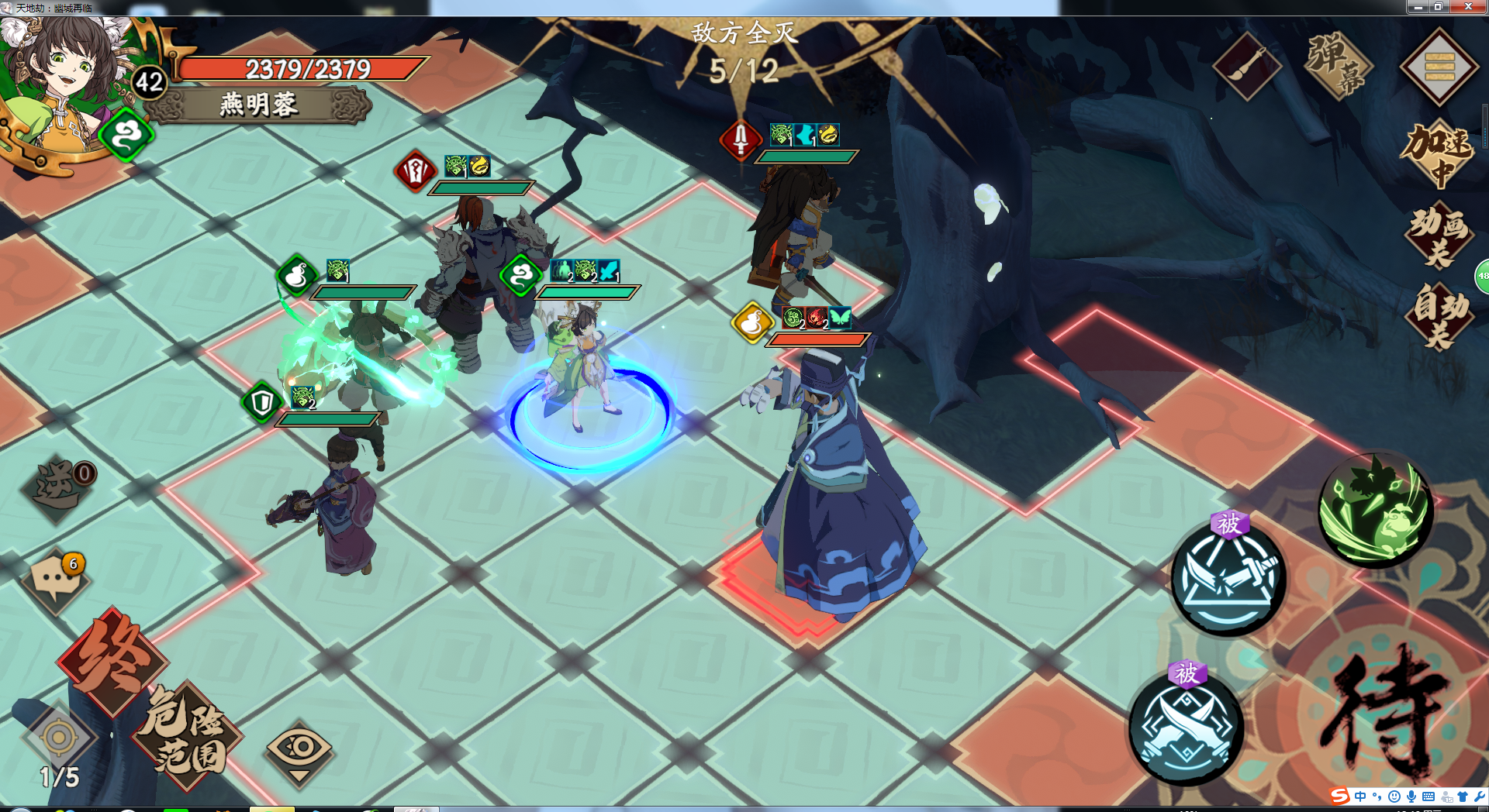 1.克制角色随意站位,小燕子紧紧贴boss。