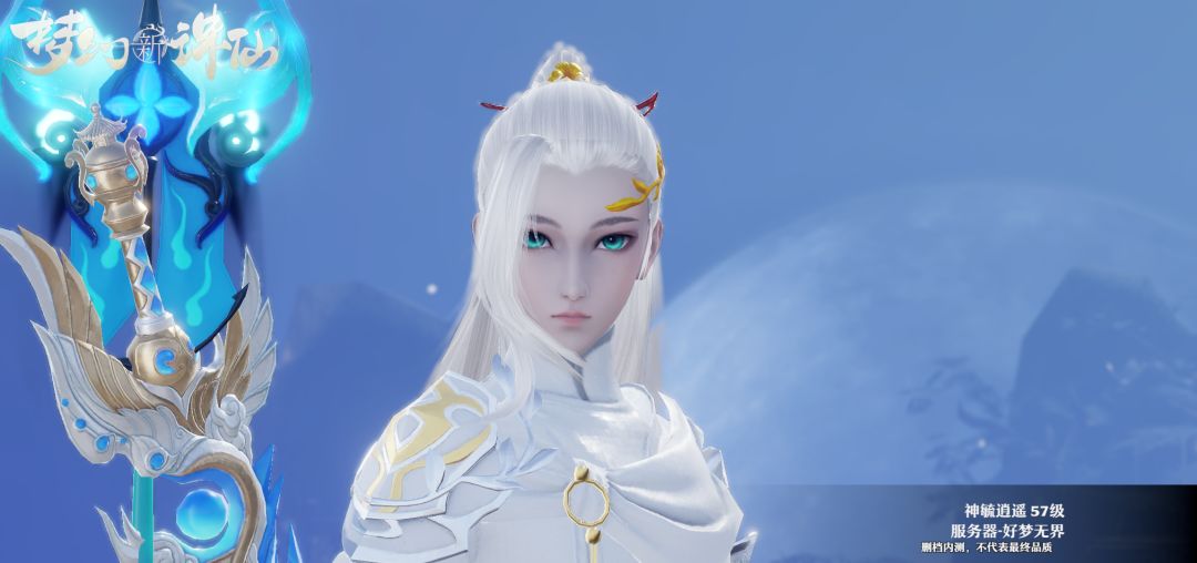 仙气的白发,搭配金色配饰,美白的肌肤配上宝石绿的眼眸。完美