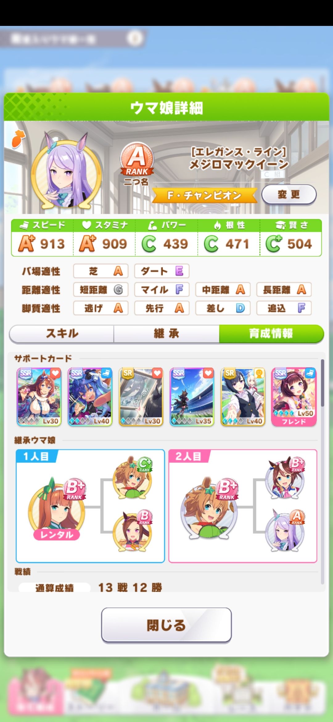 天皇赏(春)赛前 能练到的速耐力数值分别为 c+/b b/b+ e+/d