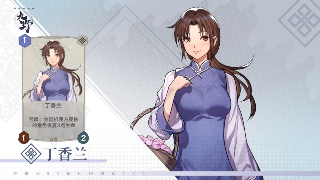 丁香兰虽然在游戏中出现次数不多,但在余杭镇剧情中和妹妹丁秀兰却是第一对出场的年轻少女,两人都爱慕李逍遥,经常煮点心给他,在李大娘心中香兰就是最理想的侄媳妇。在九野卡牌中,香兰也保持了心地善良的特点,召唤出场即可随机为受伤角色恢复3点生命。