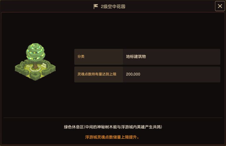 A:「空中花园」中间的神秘树木能与英雄产生共鸣~升级空中花园,浮游城灵魂点数储量上限即可提升!