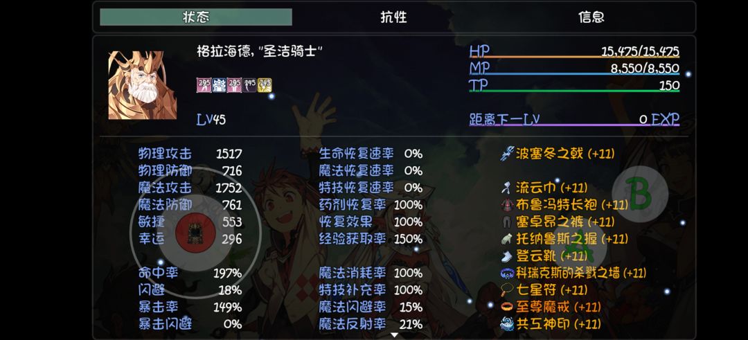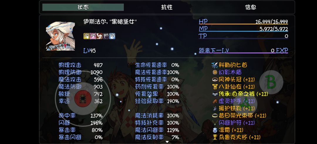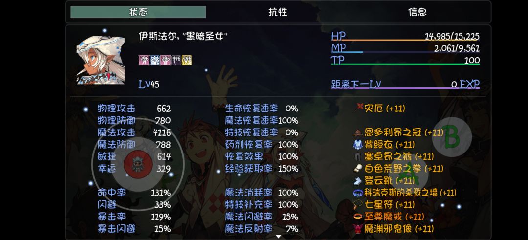 宝石以魔法攻击为主,暗元素为辅,因为技能和魔法攻击力息息相关,所以越高越好,主要是道尊七星符加125%魔法攻击力,至尊魔戒+115%,叠起来,武器打磨力符文大+7,11次就是77,宝物本身加120暗元素伤害,打15的魔力宝石。最终魔法攻击力上4000。本来想试试buff打了45深渊霸者领域下,最高能到多少伤害,结果实测的时候1999万单伤封顶,暗女被动是再行动一次,再打一次加起来4000万。也就封顶了。。。