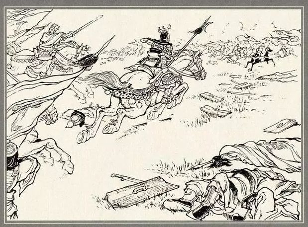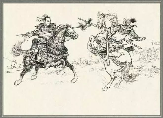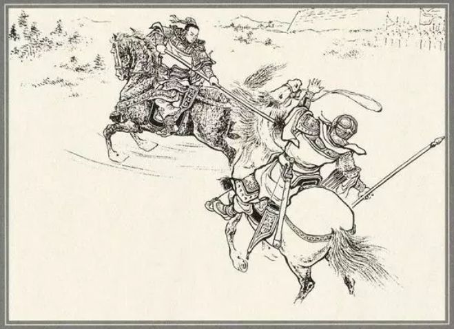 6. 张飞截住吕布,“抖擞精神,酣战吕布”,两将恶斗,“连斗五十余合,不分胜负”。此时是吕布的巅峰时代,年轻的张飞处于劣势。