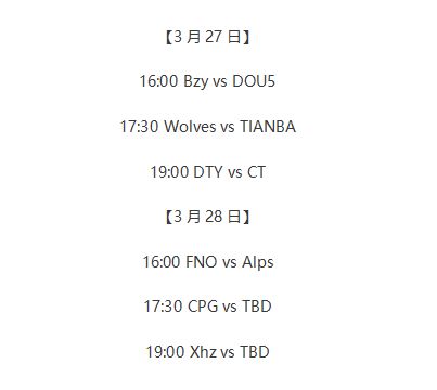 ——小组赛第一周的比赛中,XROCK、CPDD、Weibo、MRC、Gr、ATss六支战队首战告捷成功晋级下一轮,而他们的对手则遗憾掉入败者组直面淘汰危机。本周也将进行六场激烈的BO3对决。