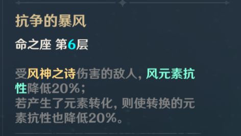 2命和6命联动,让温迪的减抗效果十分惊人,进一步提升了队伍的整体输出能力。