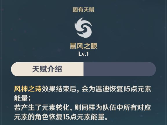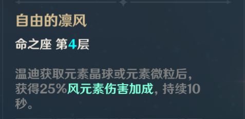 非常实用的天赋,温迪突破自带充能效率加上这个天赋让队伍的充能循环更加顺畅。