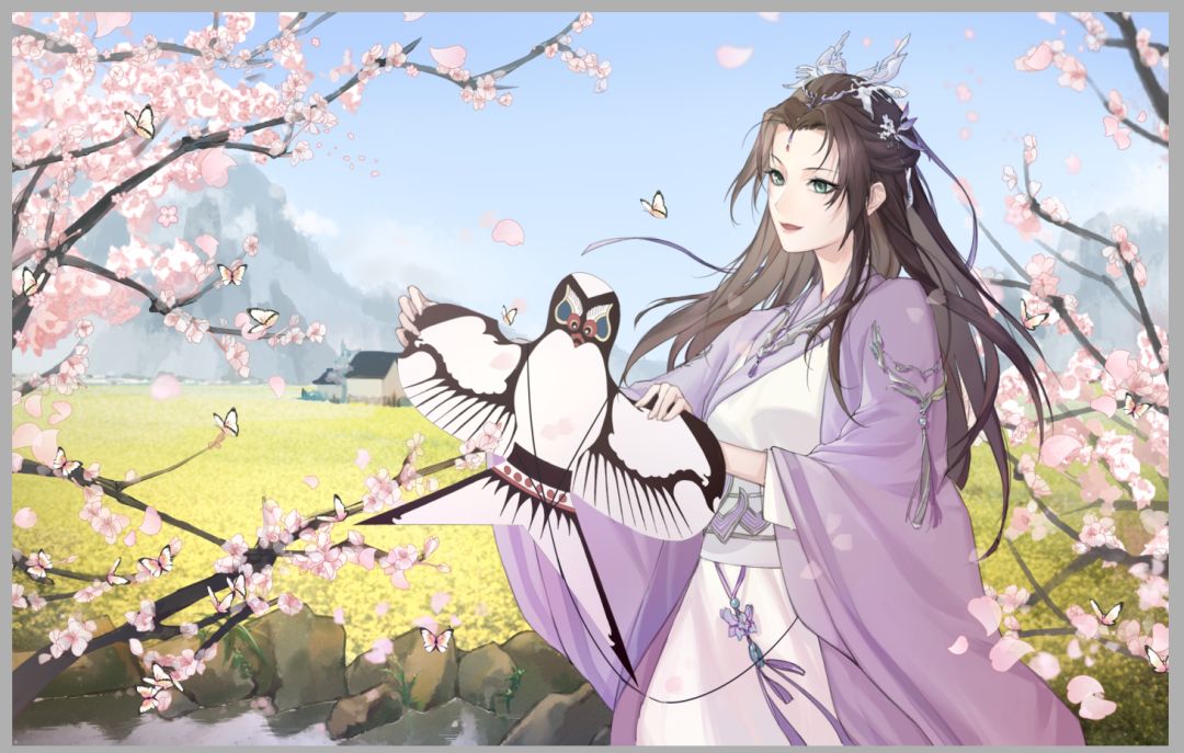 在这里,就只能借道友们的创作,寄情于画,畅想着和女主一起外出放纸鸢啦~