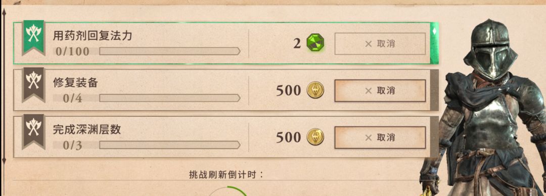 普通的挑战任务都可以取消,唯独这个钻石的这个挑战任务不能取消,但是我现在没有法力技能,怎么用魔法药剂,把这个修改一下