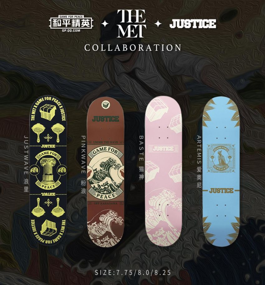 游戏无界,潮流出众!《和平精英》x大都会艺术博物馆xjustice滑板联名滑板今日发布